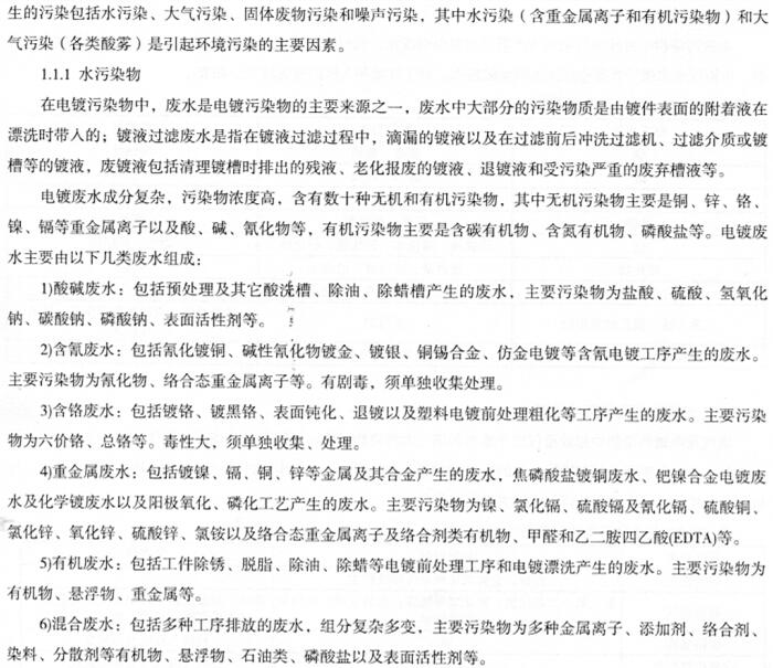 一般的電鍍生產(chǎn)工藝由前處理、電鍍和后處理工藝三部分組成,每個(gè)工藝一定程度上都是污染物產(chǎn)生,產(chǎn)